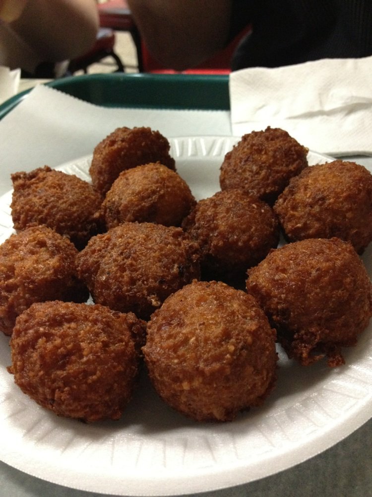 • I took a bit so you can see the innards of the balls. Heheh. And hot sauce was added.